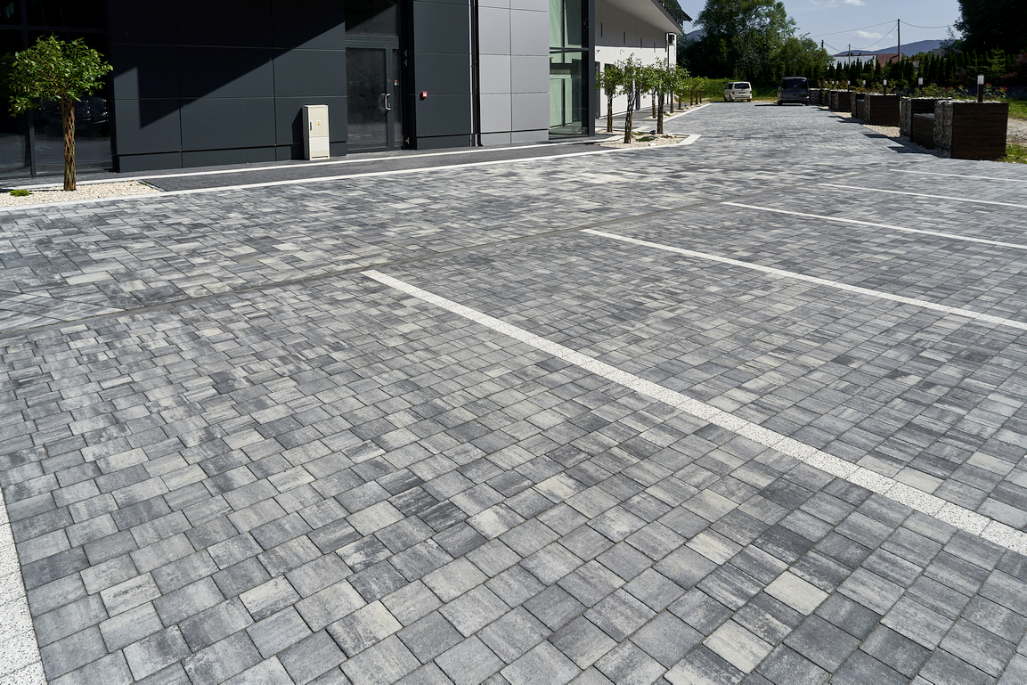 Nowoczesna forma nawierzchni oparta na dwóch regularnych kształtach kostek bez fazy